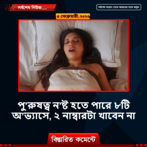 স’মস্যা যদি মনেই হয় তাহলে চিকিৎসকের শরণাপন্ন হন। তবে বাজে অভ্যাসের কারণেও পুরু’ষের জননেন্দ্রিয়ের কর্মক্ষ’মতার ক্ষ’তি হতে পারে। এসব বদভ্যাস প্রতিনিয়ত করতে থাকলে পৌরষত্বের ধার কমতেই থাকবে।