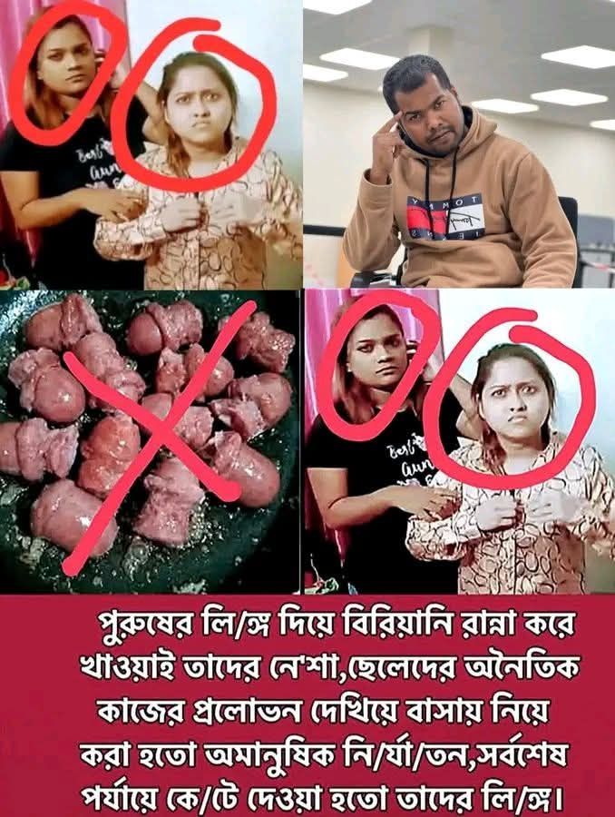 ভাইরাল ছবির ভয়ংকর দাবি সম্পূর্ণ মিথ্যা ও ভিত্তিহীন সম্প্রতি সামাজিক যোগাযোগমাধ্যমে একটি ভয়াবহ ছবি ও লেখা ভাইরাল হয়েছে, যেখানে দাবি করা হচ্ছে—দুই নারী নাকি পুরুষের অঙ্গ কেটে কাবাব বানিয়ে খেতেন এবং এ কারণে তাদের বিরুদ্ধে শাস্তিমূলক ব্যবস্থা নেওয়া হয়েছে। অনুসন্ধানে দেখা গেছে, এই দাবির কোনো বাস্তব ভিত্তি নেই। অনুসন্ধানে যা …